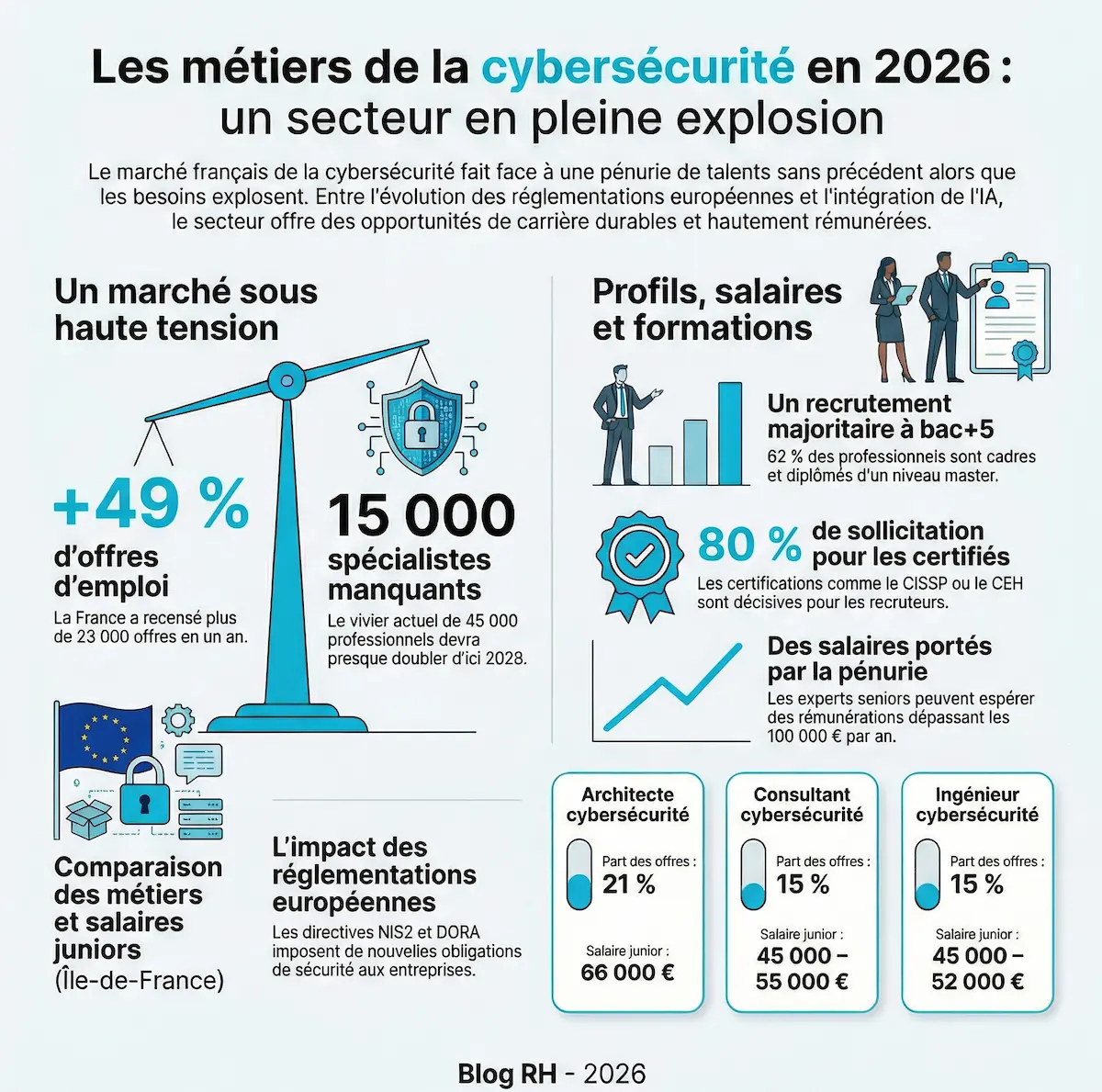 Il suffit d’une faille, d’un clic malheureux, d’une nuit sans surveillance — et c’est l’ensemble du système d’information d’une entreprise qui peut basculer. La cybersécurité est devenue l’un des secteurs les plus stratégiques de l’économie numérique, et le marché de l’emploi le confirme avec fracas : des dizaines de milliers de postes à pourvoir, une pénurie de talents qui s’aggrave d’année en année, et des salaires qui reflètent une demande sans précédent.
